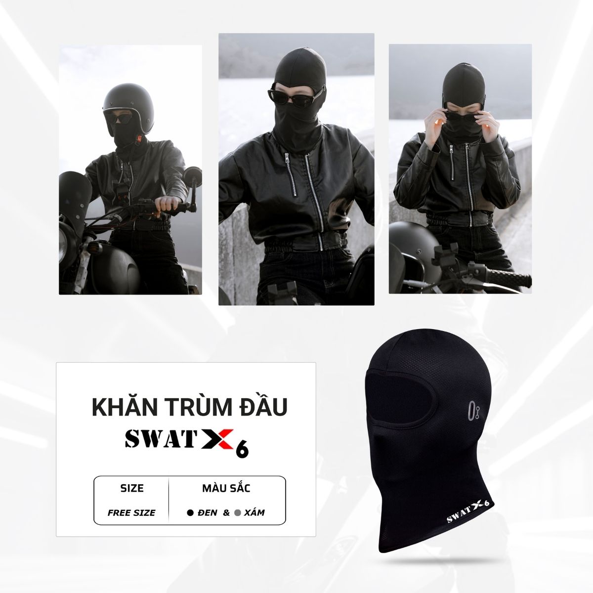Khăn Trùm Ninja SWAT X6 – Vải Kim Cương Cotton Polyester Spandex, Lỗ Xỏ Kính Tiện Lợi, Logo Phản Quang, Chống Nắng Và Tia UV
