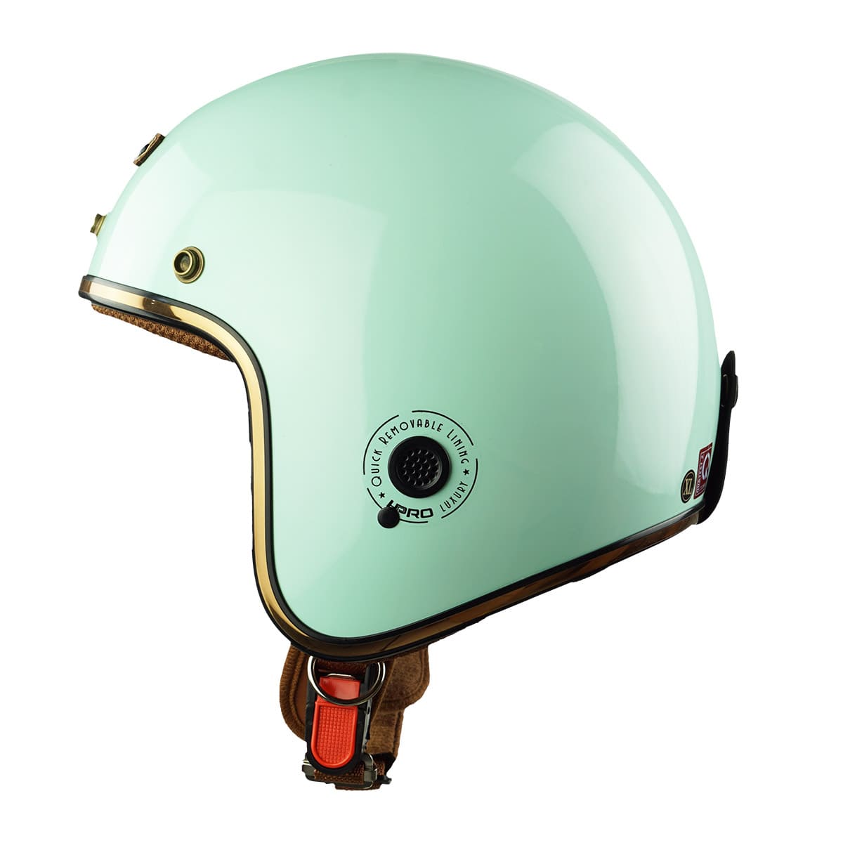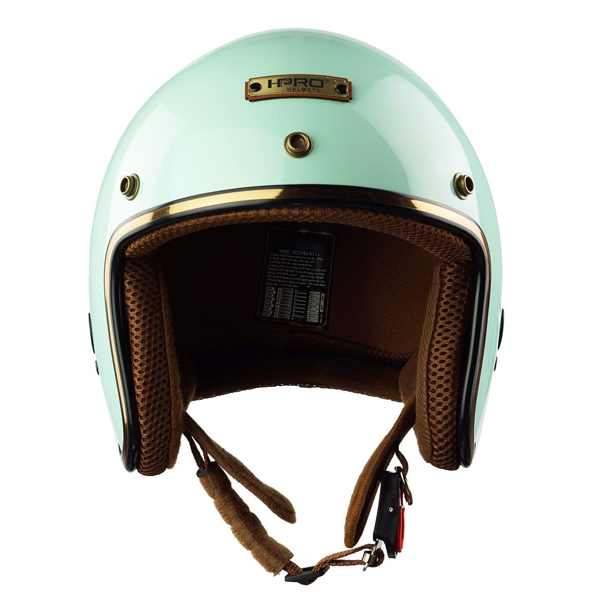 Mũ bảo hiểm HPPRO HP04 là mẫu nón 3/4 đầu hot nhất hiện nay với thiết kế nhỏ gọn, viền vàng cổ điển và phần lót nâu cực sang. Phiên bản màu xanh pastel (xanh mint bóng) mang đến cảm giác trẻ trung, nổi bật nhưng vẫn thanh lịch – phù hợp cho cả nam và nữ khi đi phố hoặc chạy xe hằng ngày.