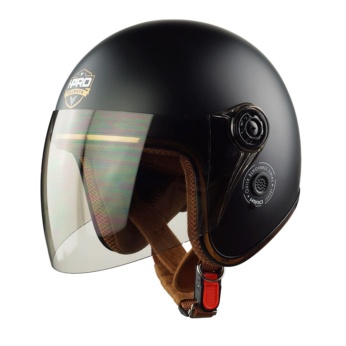 Mũ Bảo Hiểm 3/4 HP04K Có Kính – Màu Đen Nhám, Chính Hãng