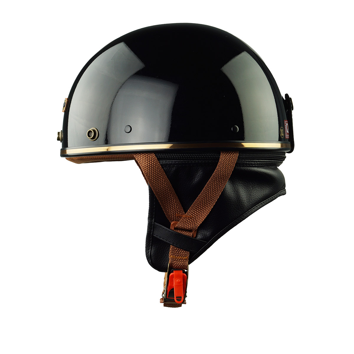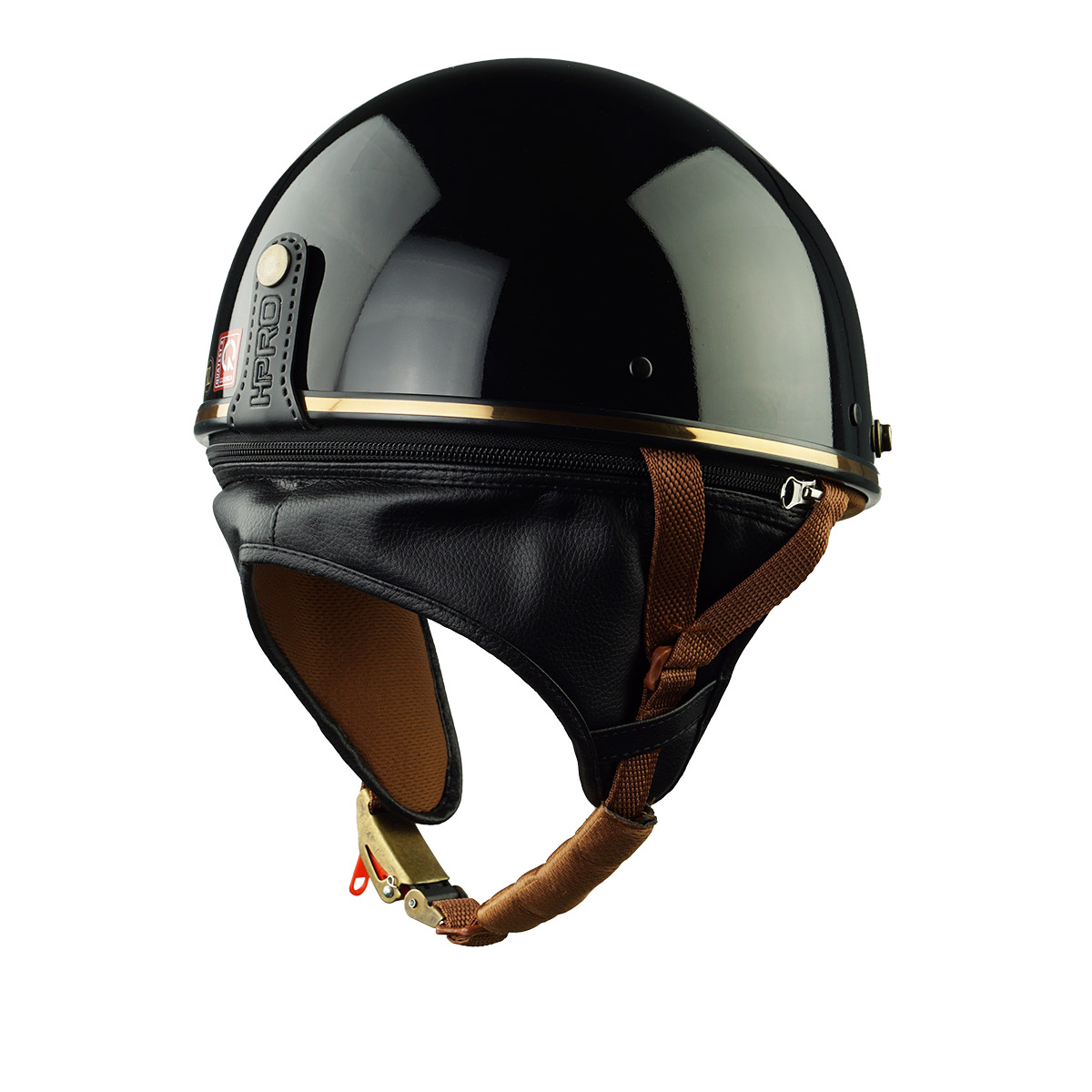 HP PUG V1 màu đen bóng là phiên bản nổi bật nhất trong dòng mũ nửa đầu HP Helmets. Lớp sơn bóng cao cấp kết hợp viền da vàng đồng sang trọng tạo nên phong cách thời thượng, phù hợp với mọi giới tính và mọi loại xe.