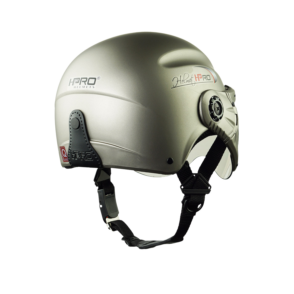 Mũ Bảo Hiểm Nửa Đầu Có Kính HP01K Màu Xám Titanium Nhám
