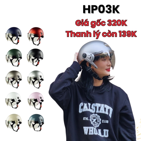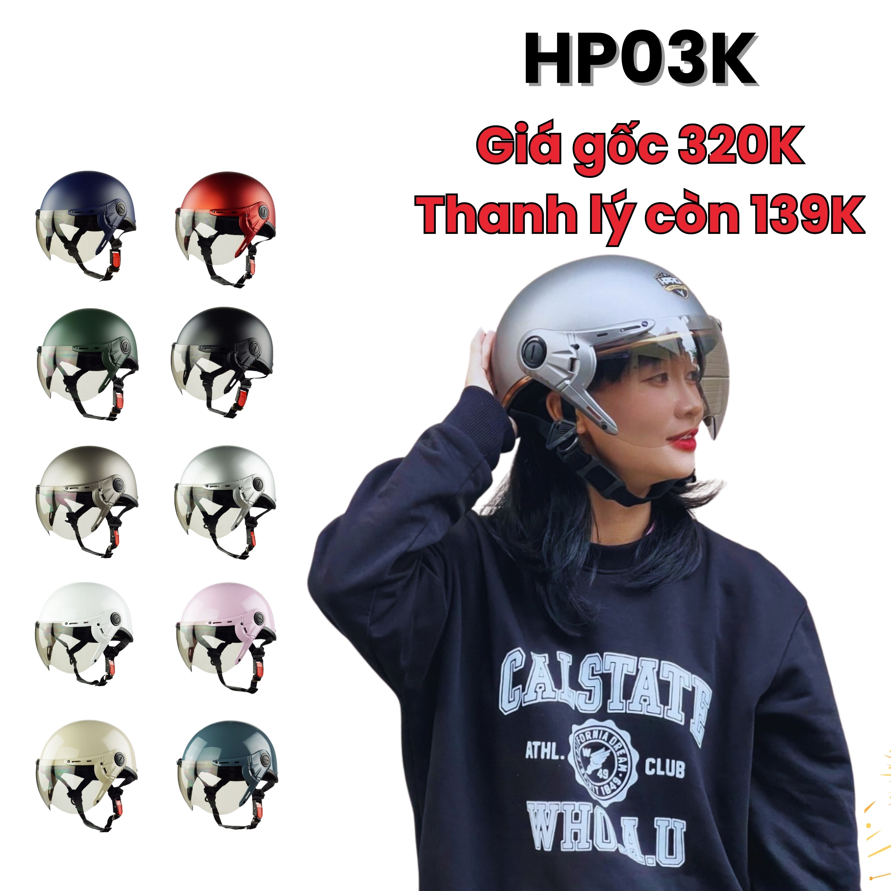 Mũ Bảo Hiểm Nửa Đầu HP03K Có Kính - Flashsale Đủ Màu KHUYẾN MÃI - ƯU ĐÃI