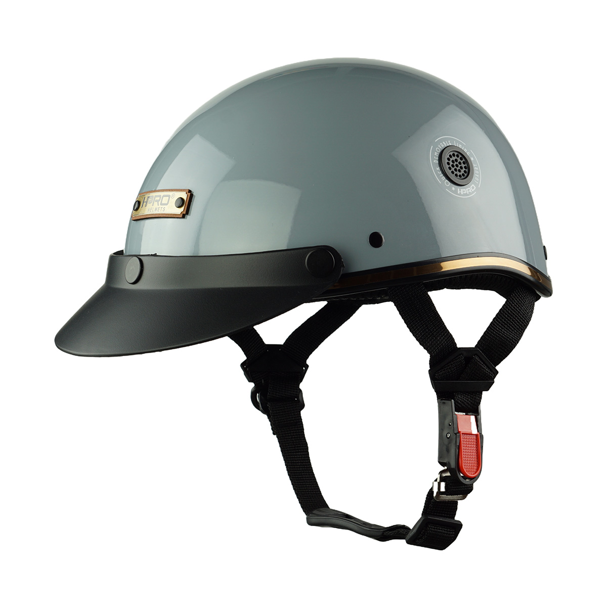Mũ Bảo Hiểm Nửa Đầu HPPRO HP03 – Màu Xám Xi Măng Bóng, Có Vành, Khóa Bấm Cao Cấp – Chính Hãng HPPRO