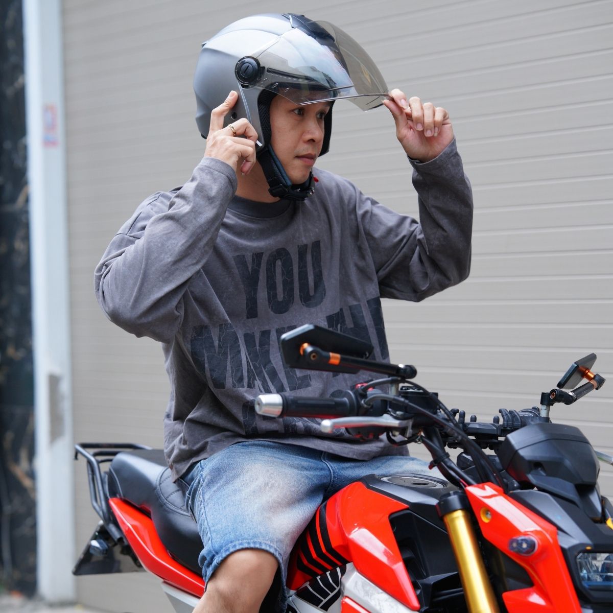 Banner mũ bảo hiểm Royal XH01 3/4 – các màu Titanium, trắng bóng, tem Thitipong, đen nhám – kính chắn gió chống tia UV, chính hãng Royal Helmet.