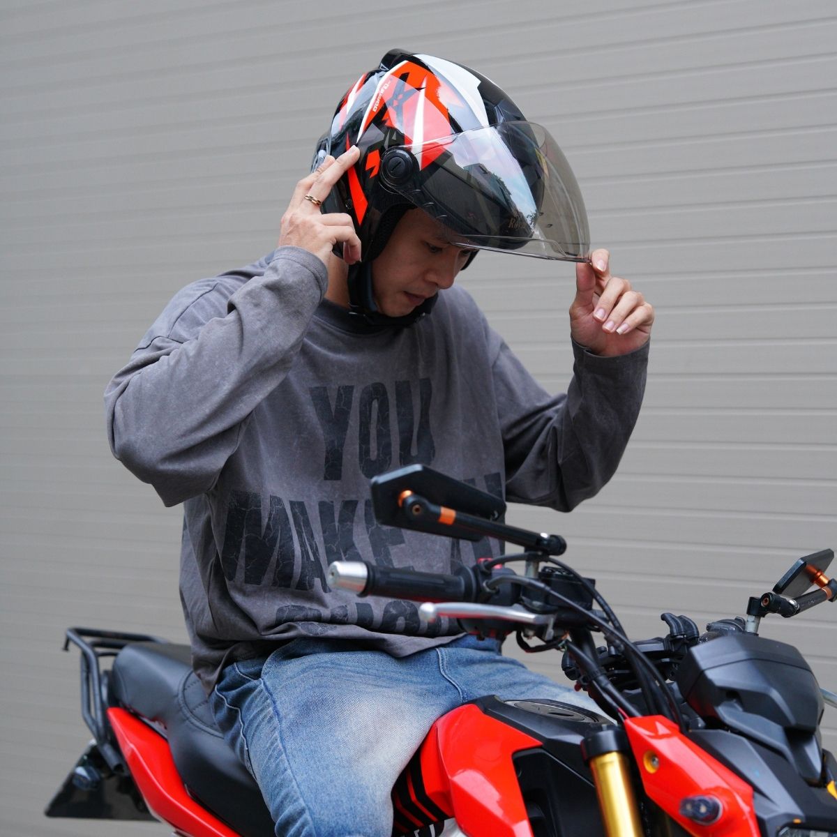 Mũ Royal XH01 tem Racing đỏ – kiểu dáng 3/4, form gọn, phong cách thể thao nổi bậtThiết kế mặt trước hiện đại, kính bảo vệ toàn diện và dễ tháo lắpHình ảnh thực tế Royal XH01 tem Racing đỏ – nổi bật khi phối cùng xe mô tôLogo Royal dập nổi và hệ thống thông gió trước – sau giúp đội mát hơnMũ Royal XH01 tem Racing đỏ – phối màu nổi bật, phù hợp phong cách đường phố