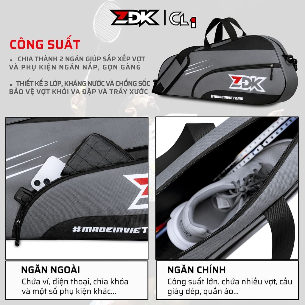 Baohoxemay.com – đại lý phân phối chính thức túi thể thao ZDK. Cam kết hàng chính hãng – bảo hành 12 tháng – Freeship đơn từ 500 K. Khám phá ngay mẫu túi đựng vợt cầu lông ZDK CL1 để đồng hành cùng bạn trong mỗi trận đấu!