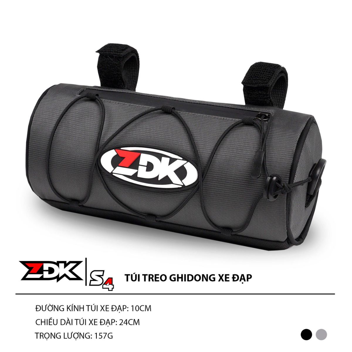 Túi ZDK S4 được thiết kế dạng trụ tròn đường kính 10 cm, chiều dài 24 cm, giúp cân đối và không chiếm diện tích tay lái. Bề mặt phủ vải Oxford 1200D cao cấp, chống trầy xước và chống bám bụi hiệu quả, phù hợp cả xe đạp đường phố và xe đạp thể thao.